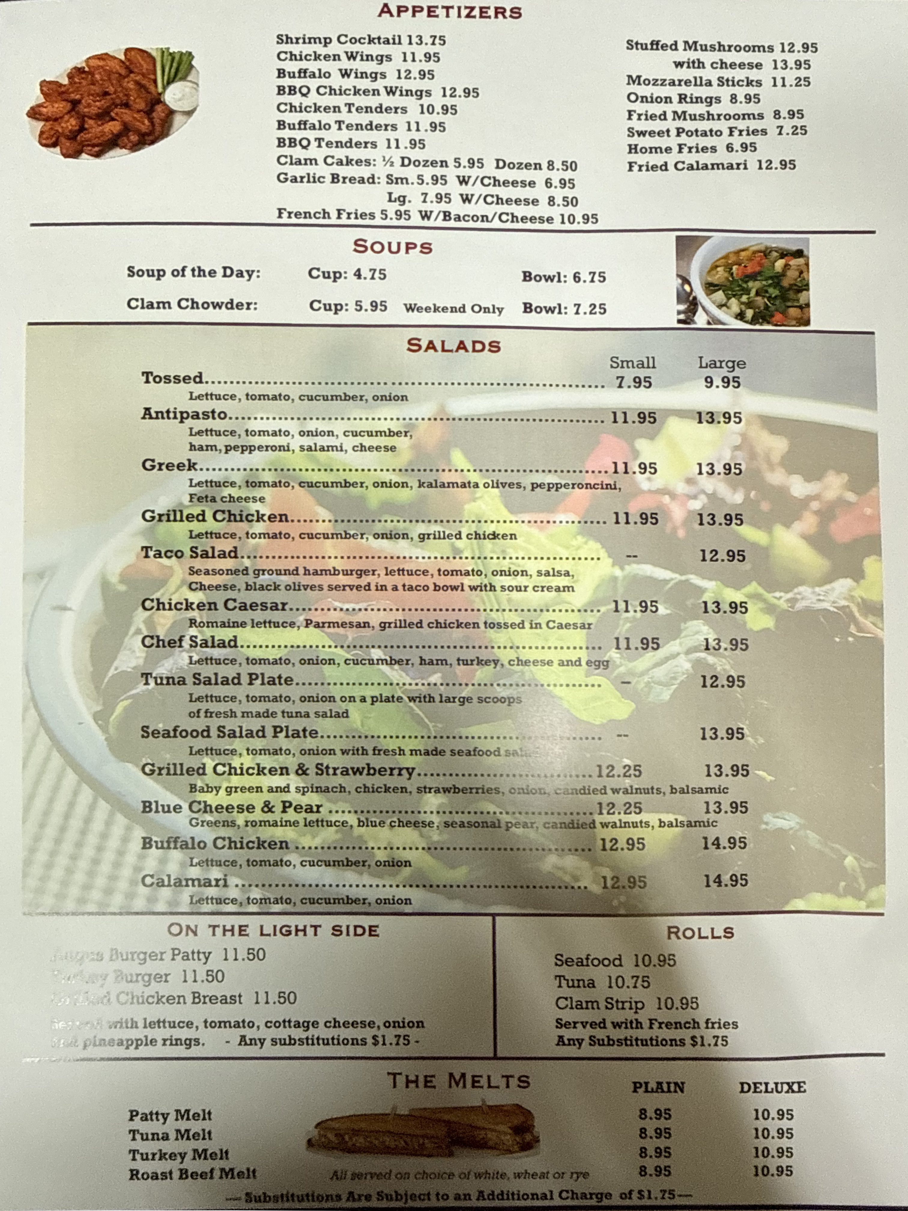 Dine on our great food at home with our take out service. All of our menu items are available for take out 7 days a week.